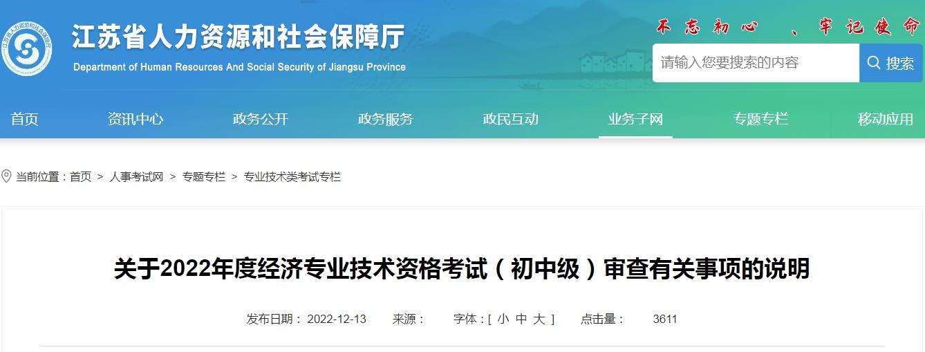 根據(jù)《江蘇省人力資源社會保障廳關于進一步加強專業(yè)技術人員資格考試審查工作的通知》(蘇人社發(fā)〔2018〕383號)、省人力資源社會保障廳《關于2022年度經(jīng)濟專業(yè)技術資格考試工作有關事項的通知》(蘇人社函〔2022〕121號)文件規(guī)定和要求,我省將對2022年度經(jīng)濟專業(yè)技術人員資格考試(初中級)考試全部科目成績合格人員進行考后資格審查,現(xiàn)將有關事項通知如下:一、審查對象