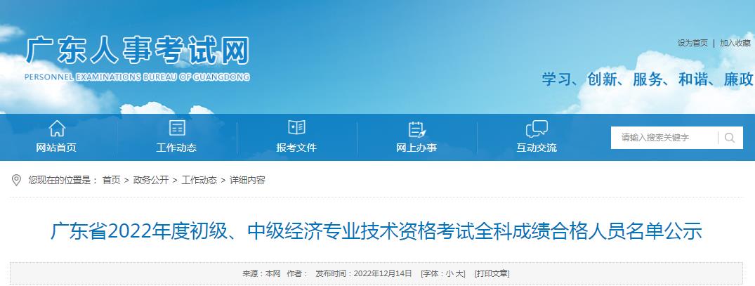 廣東省2022年度初級、中級經(jīng)濟專業(yè)技術(shù)資格考試全科成績合格人員名單公示