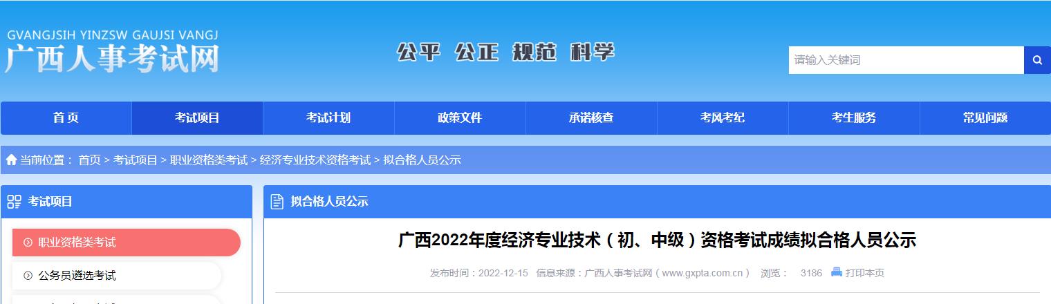 廣西2022年度經(jīng)濟專業(yè)技術(shù)(初、中級)資格考試成績擬合格人員公示
