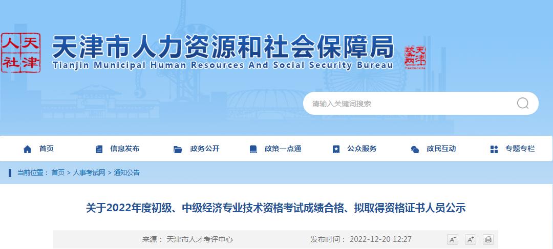 關于2022年度初級、中級經(jīng)濟專業(yè)技術資格考試成績合格、擬取得資格證書人員公示