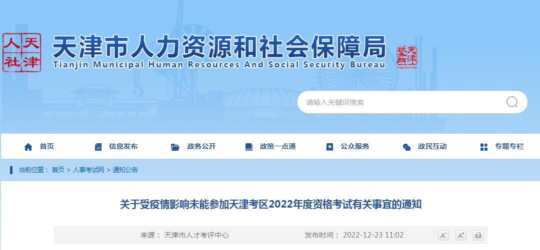 關(guān)于受疫情影響未能參加天津考區(qū)2022年度資格考試有關(guān)事宜的通知
